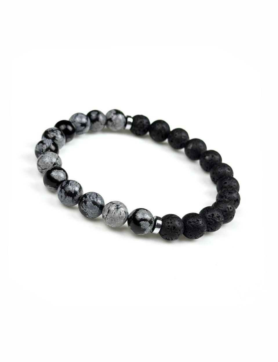 Браслет из снежного обсидиана и вулканической лавы