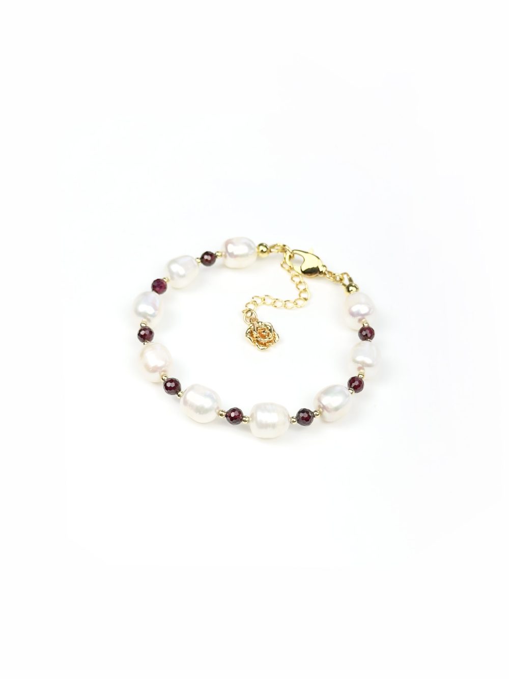 Браслет создан из натурального жемчуга и граната в ювелирной огранке. Каждая жемчужина, словно капля росы, символизирует нежность и чистоту, а гранат добавляет глубину и благородство, создавая поистине волшебный образ.