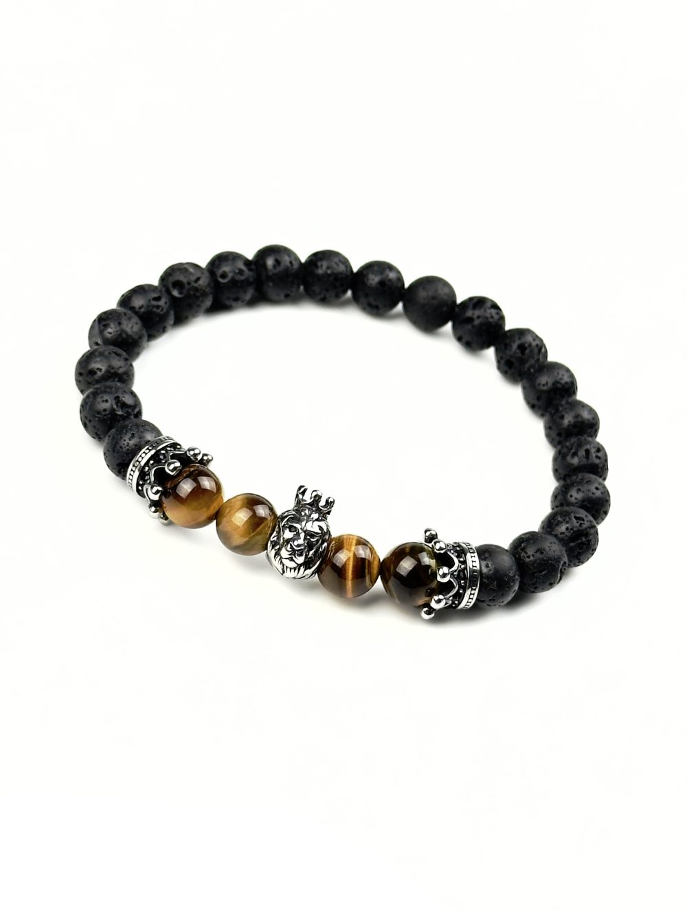 Состав изделия:   Тигровый глаз, вулканическая лава, вставки в виде корон и головы льва из нержавеющей стали