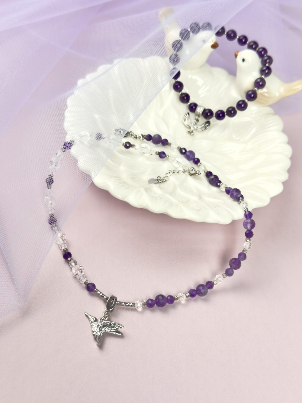 Аметист цвета фиалковых сумерек — камень поэтов и провидцев. Его фиолетовая глубина усмиряет мысли, раскрывает интуицию и дарит творческое озарение.