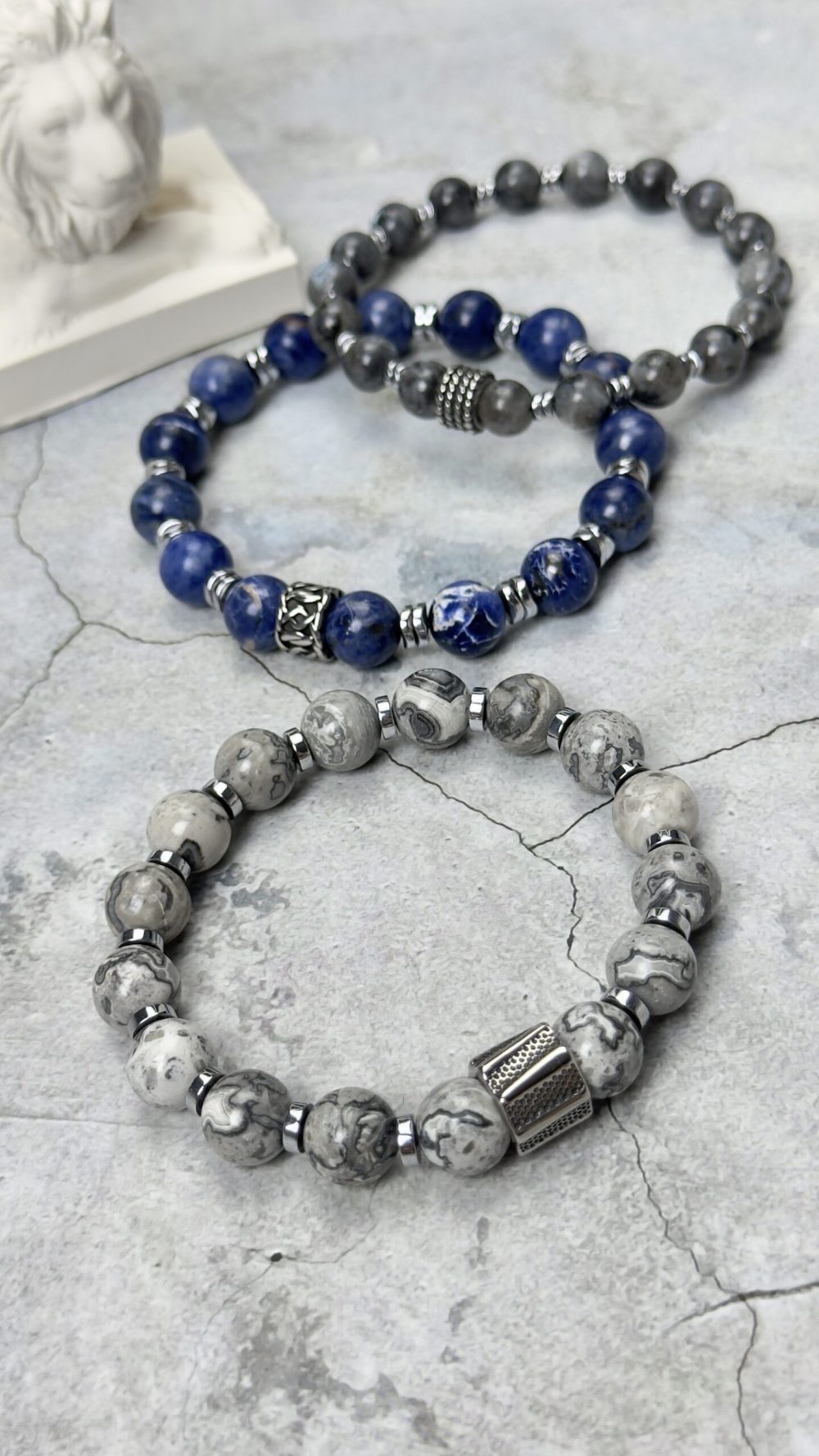 Браслет СТАЛЬНОЙ ХАРАКТЕР. Серая яшма — для тех, чья сила в спокойной уверенности. Когда достоинство важнее громких слов, а власть над обстоятельствами становится искусством.