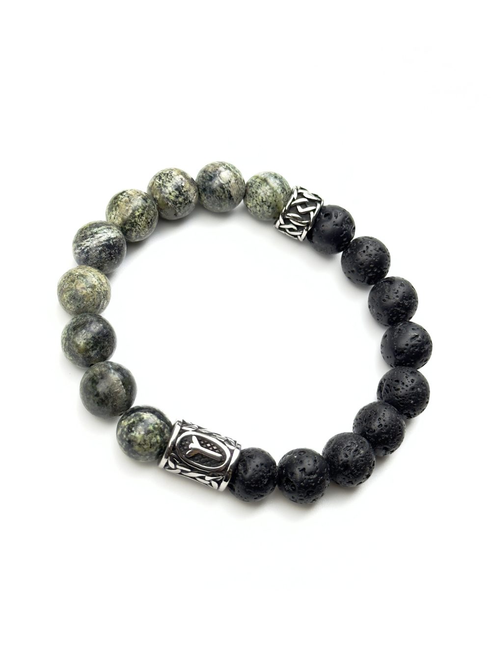 Состав изделия: змеевик, вулканическая лава, руна Альгиз из нержавеющей стали