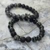 Зеленая яшма, освежающая и успокаивающая, символизирует баланс и гармонию. Этот камень помогает развивать интуицию и способствует эмоциональному равновесию. Вулканическая лава, со своей уникальной пористой текстурой, привносит в браслет силу земли и глубину, а также помогает снять стресс и напряжение. Гематит, известный своими защитными свойствами, усиливает уверенность в себе и способствует очищению от негативной энергии.