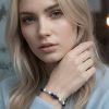 Центральные элементы браслета — серебристые вставки с сияющими фианитами, которые придают изделию особый блеск и элегантность.