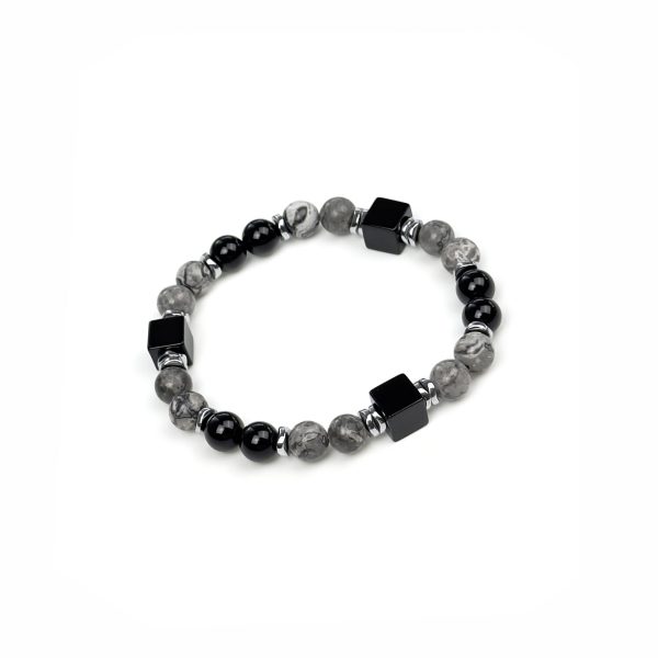Гематит с его благородным металлическим блеском символизирует стойкость и уверенность. Сердечки придают украшению женственность и романтический шарм. Бордовая шпинель в сочетании с гематитом добавляет глубины и яркости, создавая эффектный контраст, который привлекает внимание.