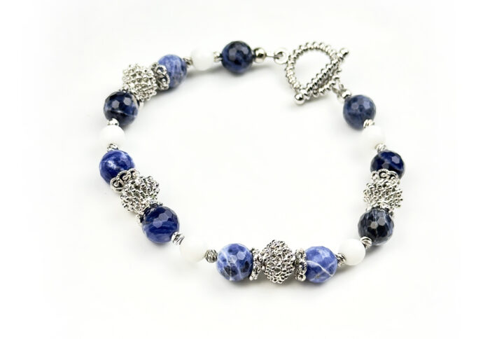 Колье исполнено в ассиметричном стиле, что придаёт ему динамику и современный вид. Жемчуг майорка со своим мягким сиянием и перламутровым блеском придает образу особый шарм, а эффектная цепь добавляет яркости и броскости.