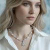 Жемчуг — символ чистоты и утонченности. Его нежные переливы создают атмосферу легкости, отражая свет и придавая образу изящество. Жемчуг способен дополнить любой наряд, добавляя образу романтичность и элегантность. Аквамарин, своими холодными голубыми оттенками, создает ощущение морозной свежести и чистоты, а горный хрусталь добавляет элемент свободы и оригинальности, его прозрачность и нестандартные формы вызывают ассоциации с искрящимися льдинками и снежными пейзажами.