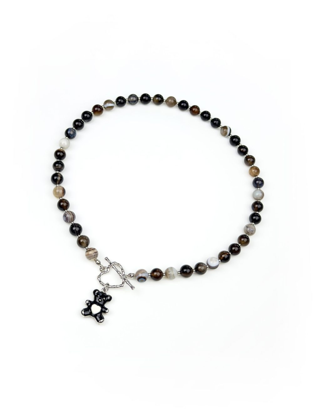Состав изделия:   агат, замок-тогл, подвеска Черный Мишка