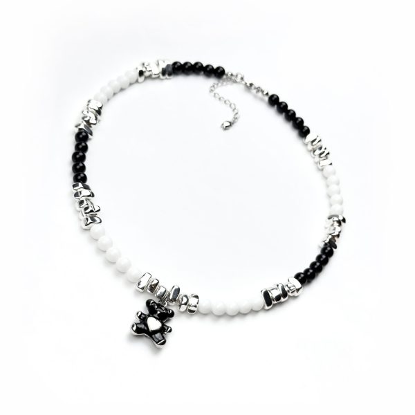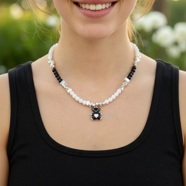 Миловидная подвеска в виде черного мишки с белым сердечком добавляет нотку игривости и теплоты, придавая украшению особый шарм.