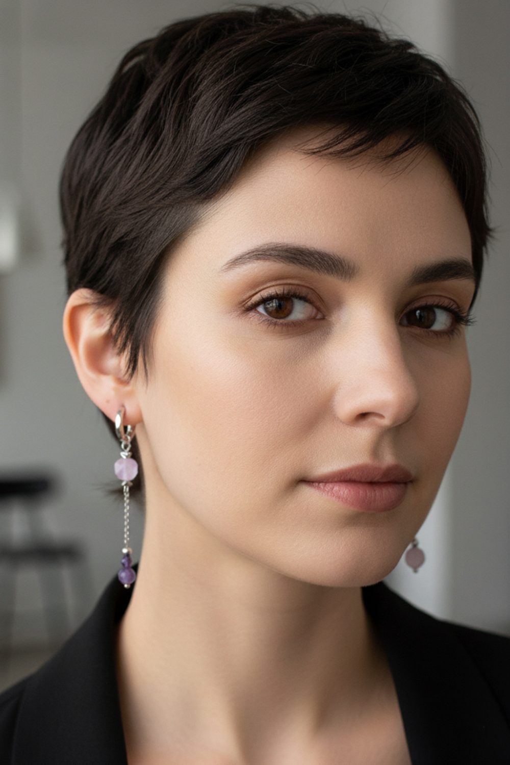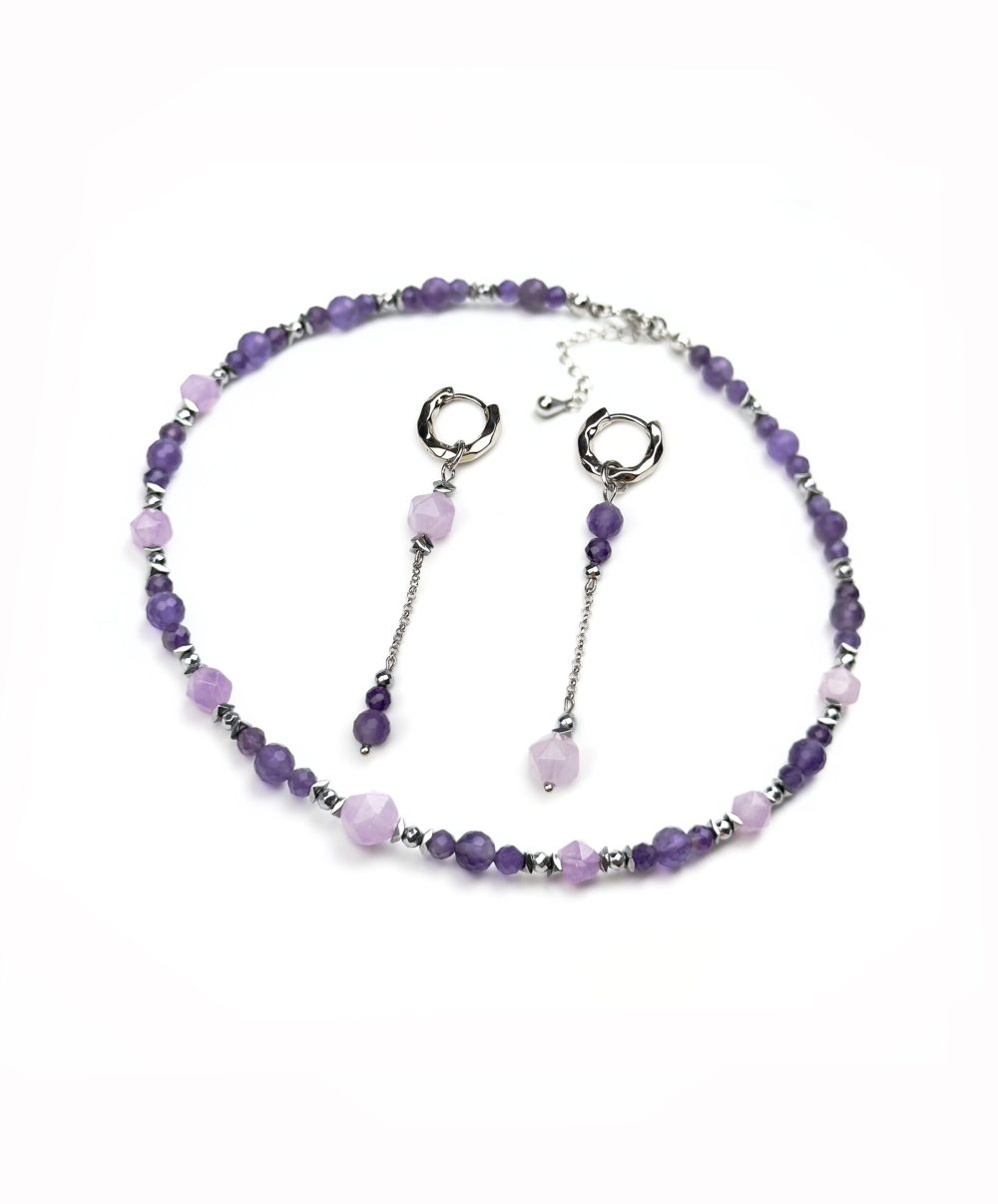 Аметист с его бархатной фиалковой глубиной и гематит — с дерзким металлическим блеском. Два камня, соединенных в эффектный контраст, напоминающий о гармонии противоположностей.