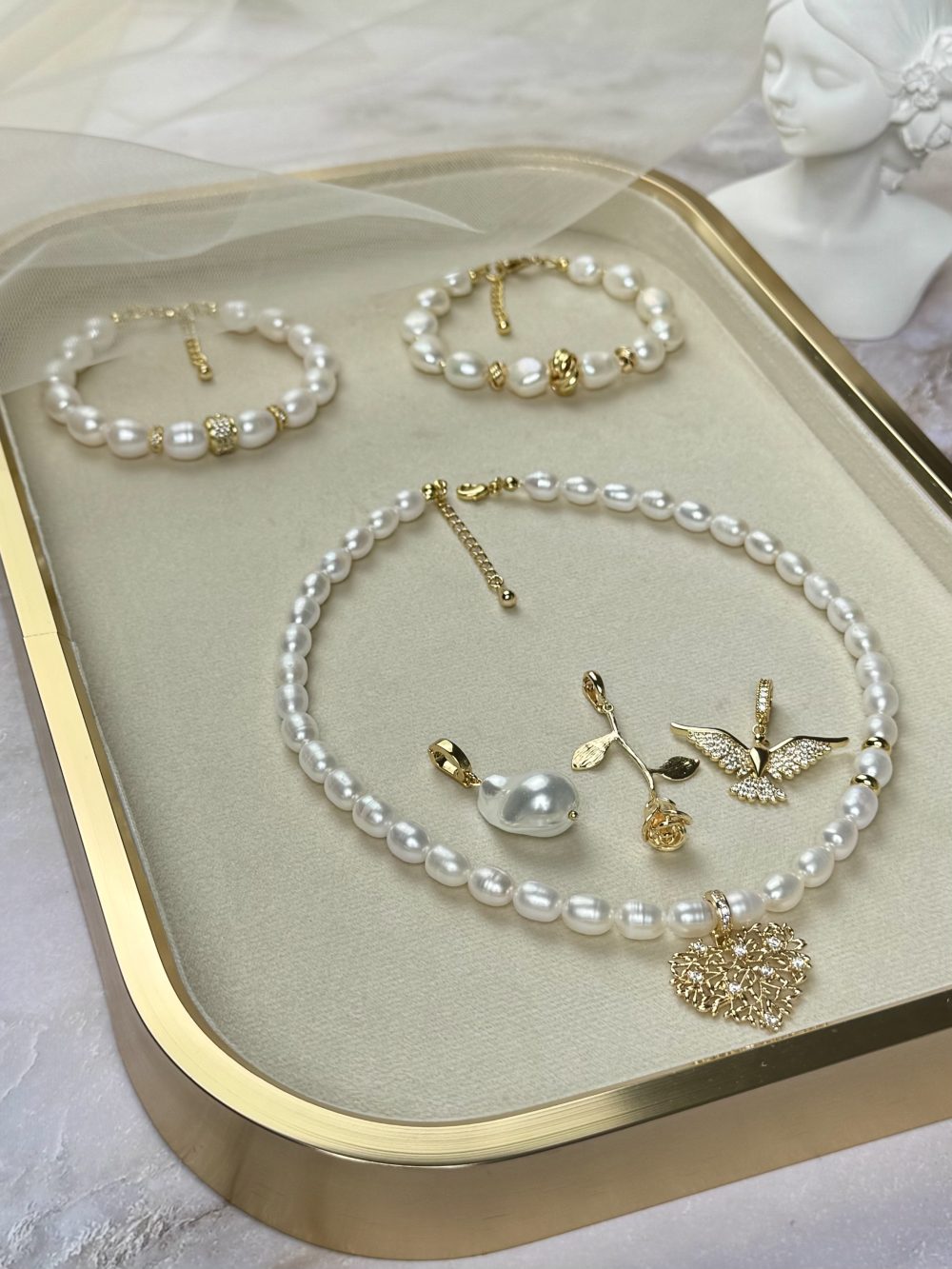 Натуральный жемчуг, чье перламутровое сияние говорит на языке вне времени, не просто дополняет образ, а становится его продолжением: сдержанным, глубоким, по-настоящему утонченным.