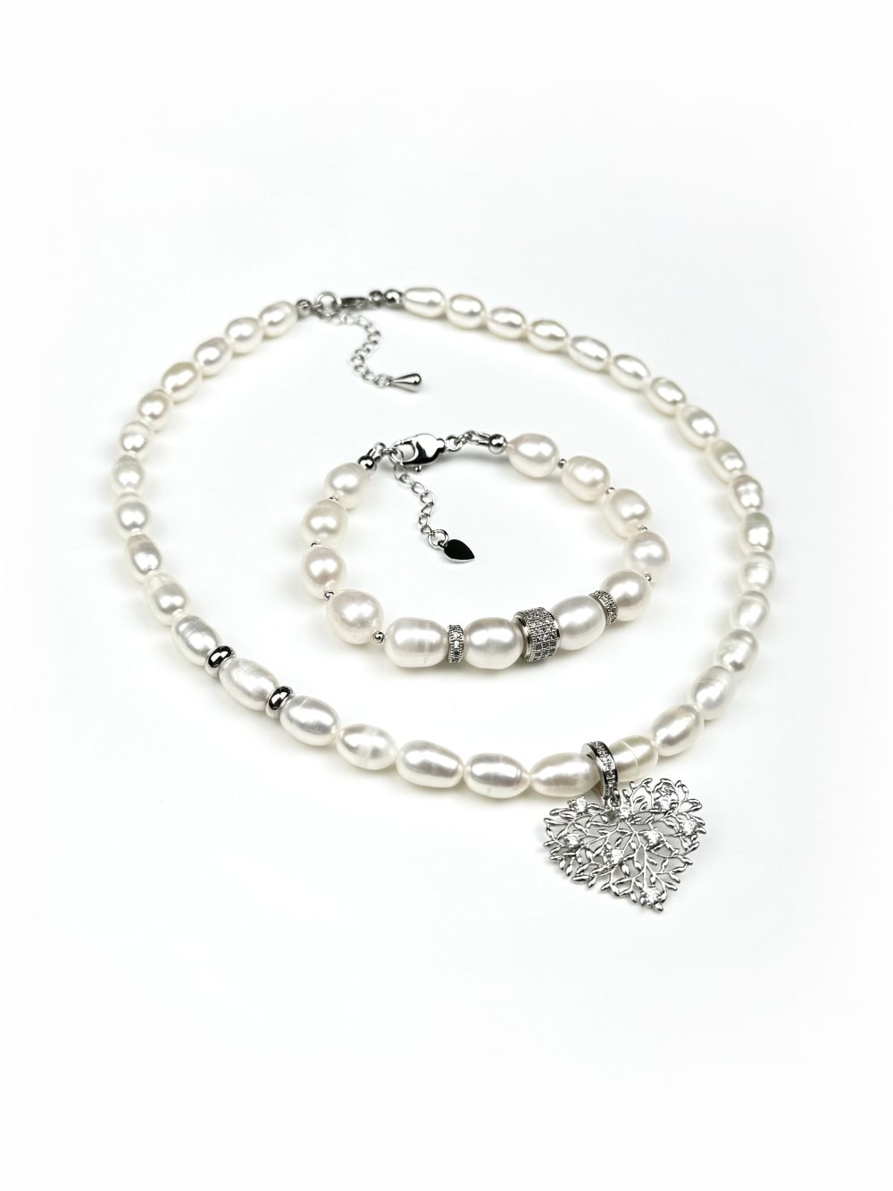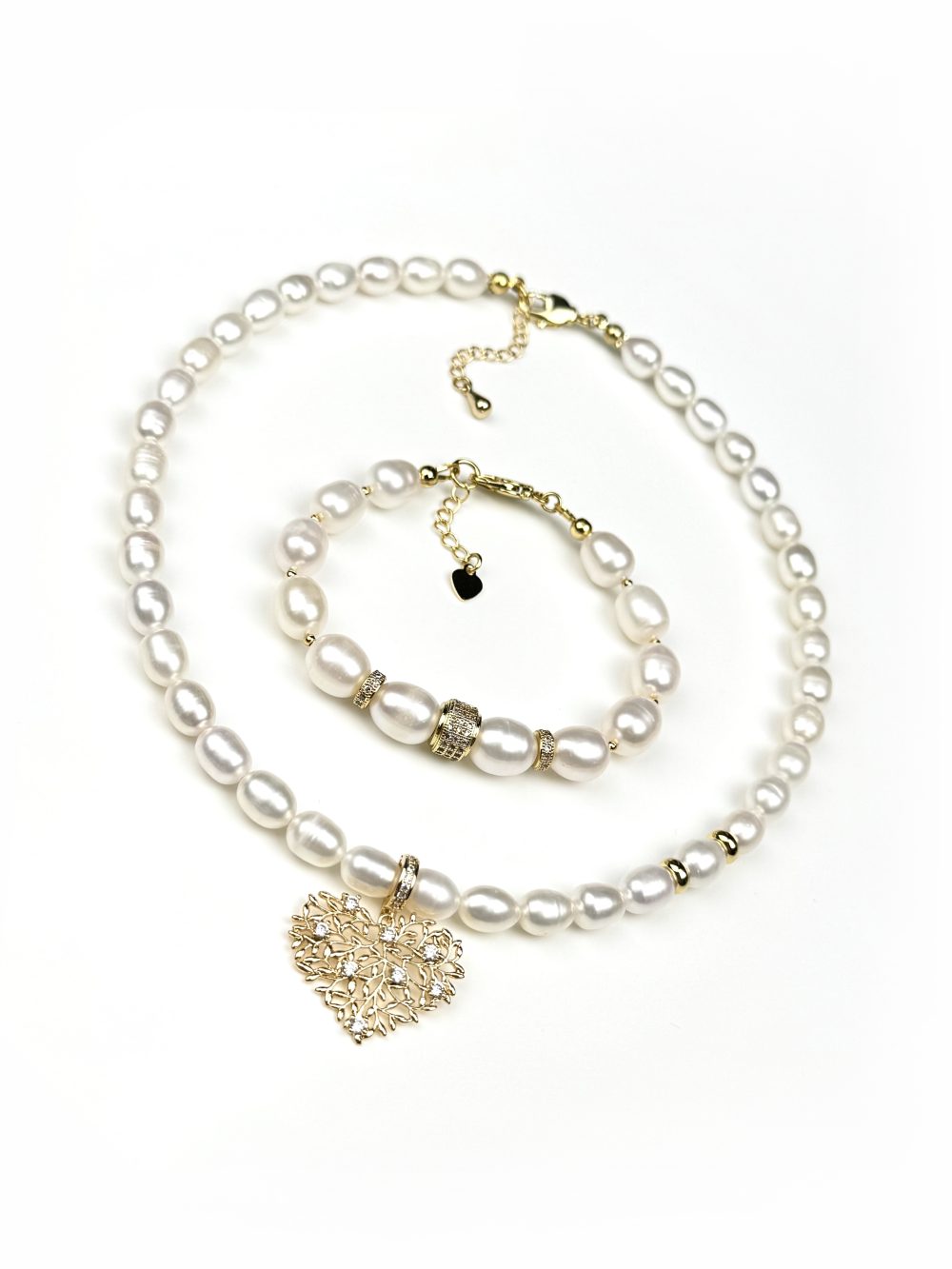 Состав изделий: натуральный жемчуг, подвеска на выбор (Сердце, Феникс), вставки, инкрустированные фианитами