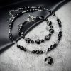 Чёрный агат в сияющей огранке и гематит с его холодным стальным блеском. Два камня, сплетенные в диалоге контраста: таинственная ночная тьма и дерзкий вызов металла.