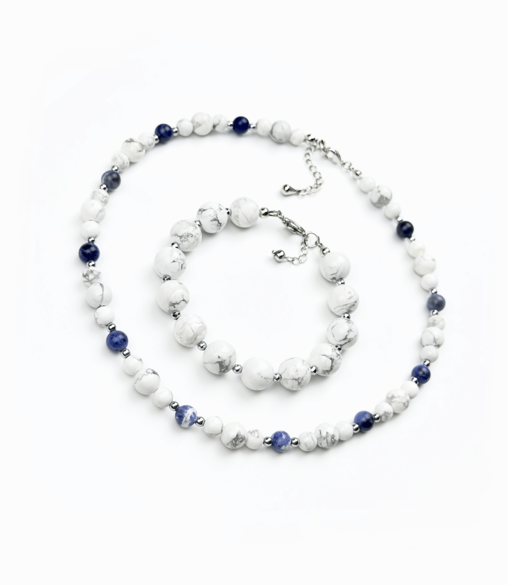 Содалит обостряет интуицию, помогая слышать тишину между мыслями. Магнезит мягко снимает напряжение, даря ощущение свежести и обновления.