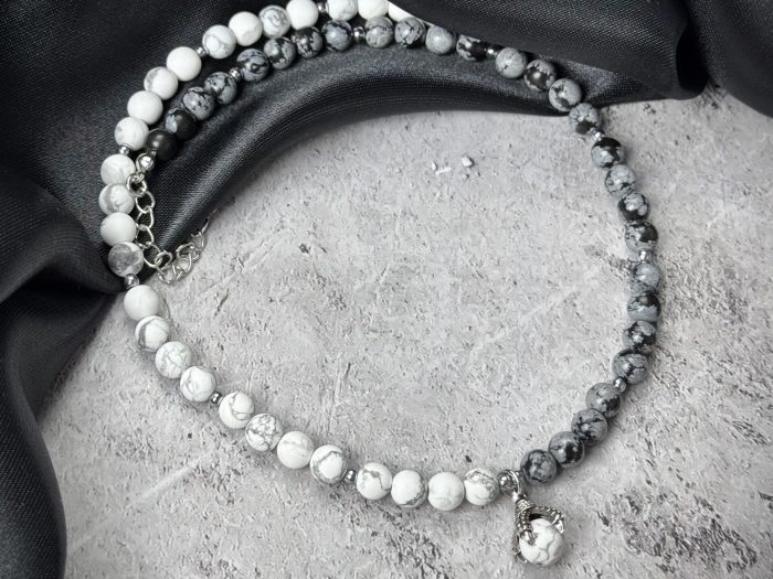 Колье КОГОТЬ ДРАКОНА. Обсидиан и Магнезит